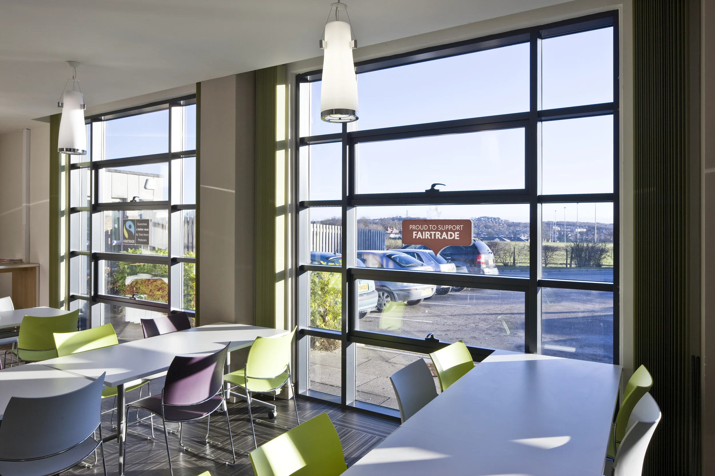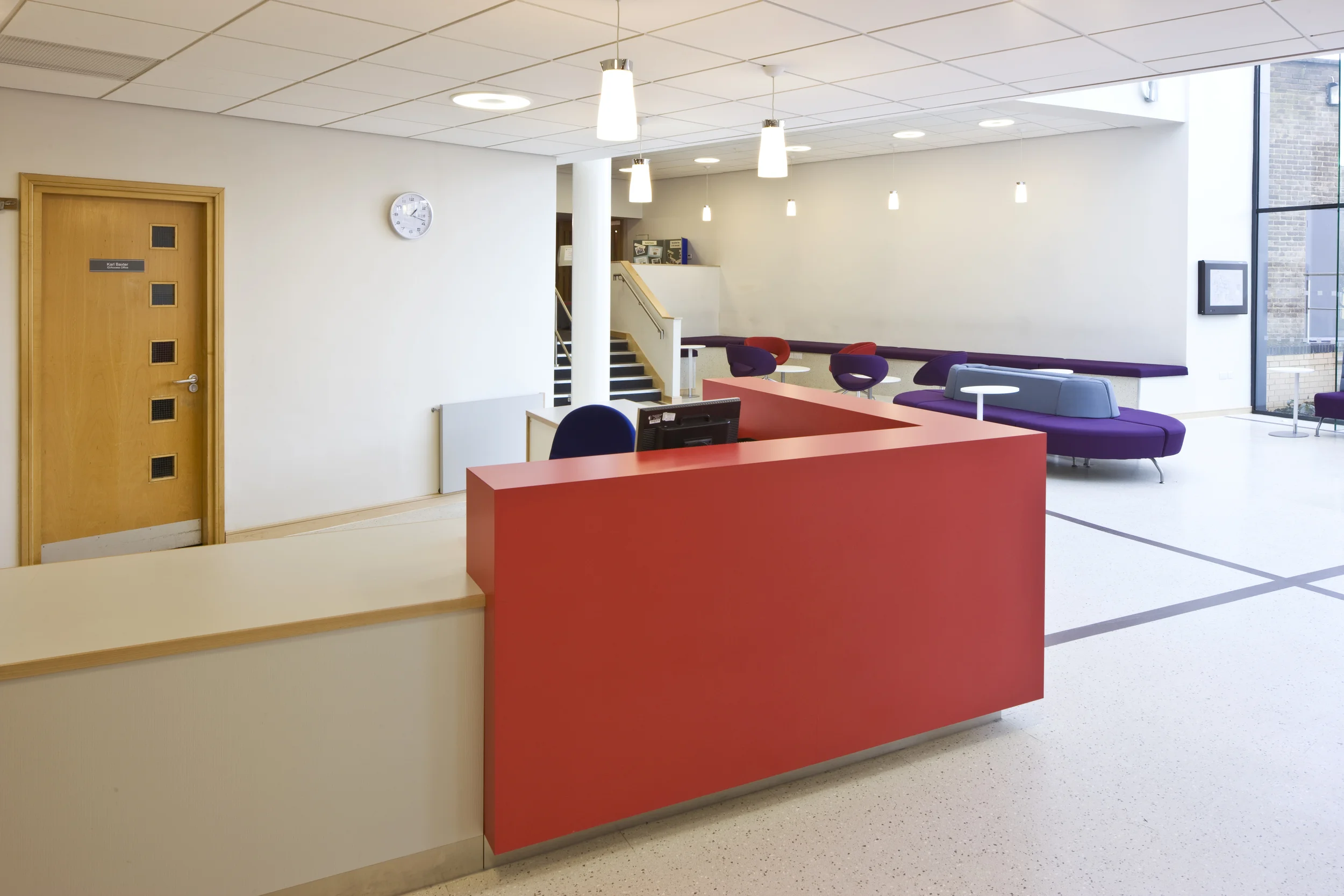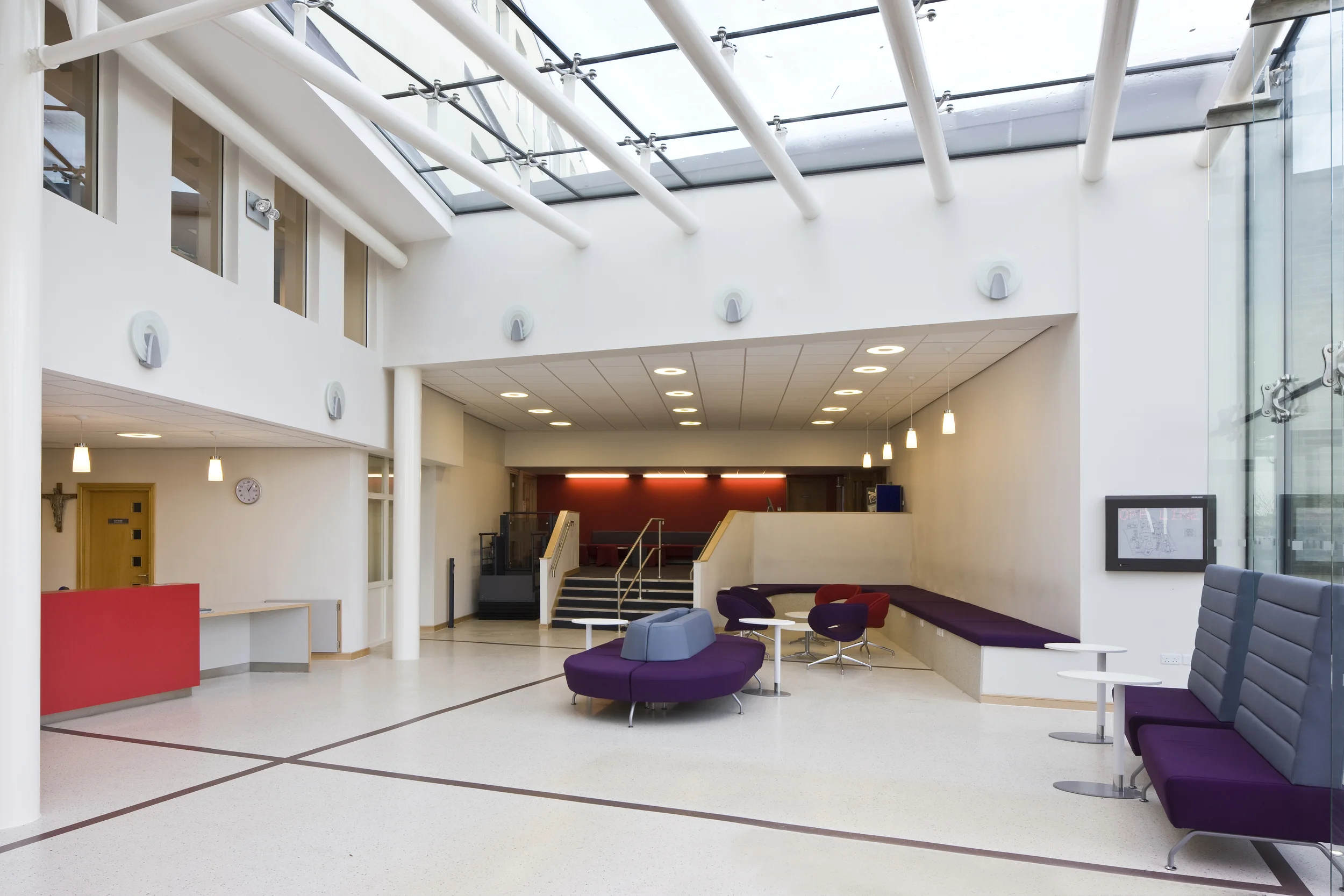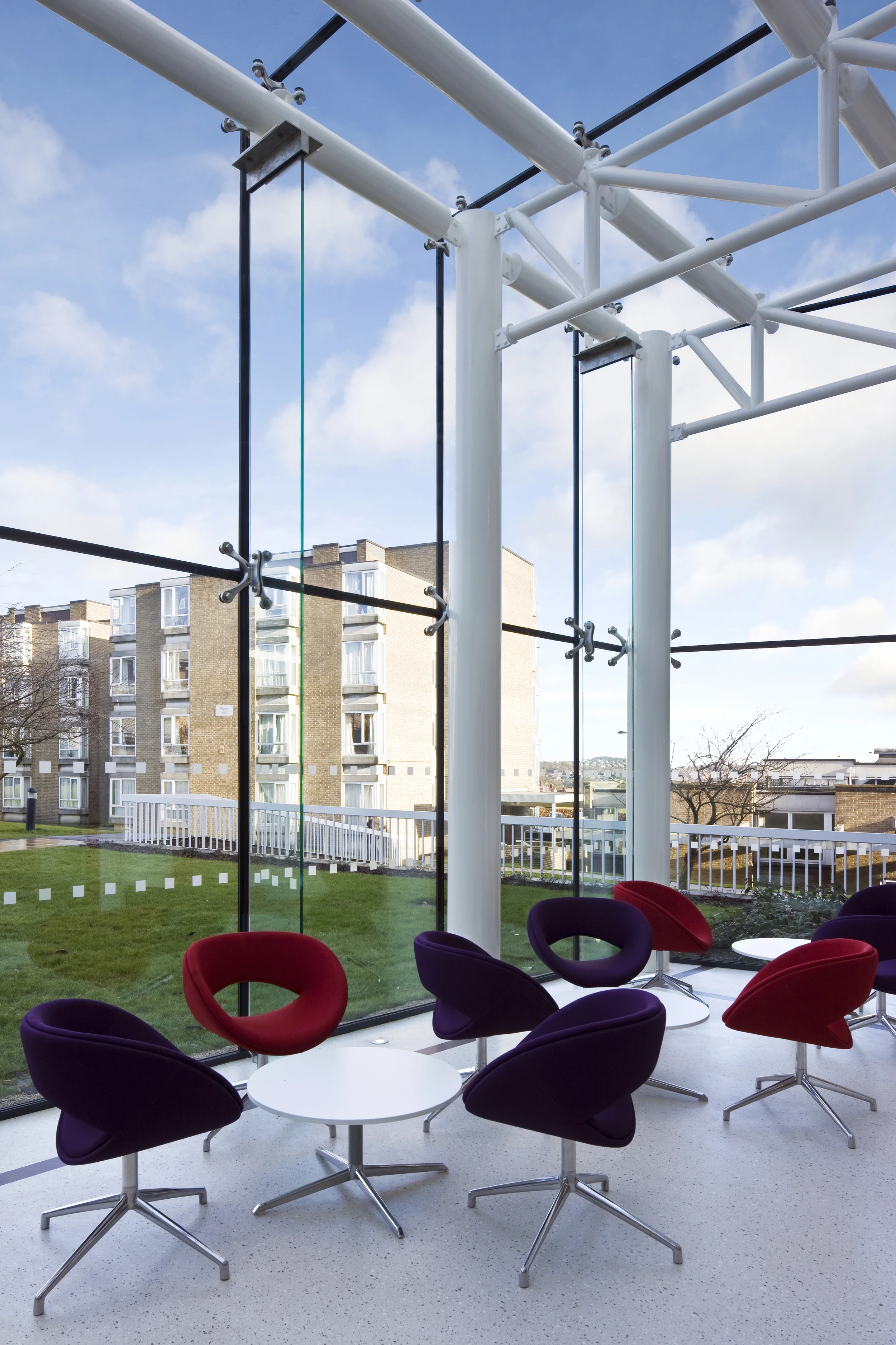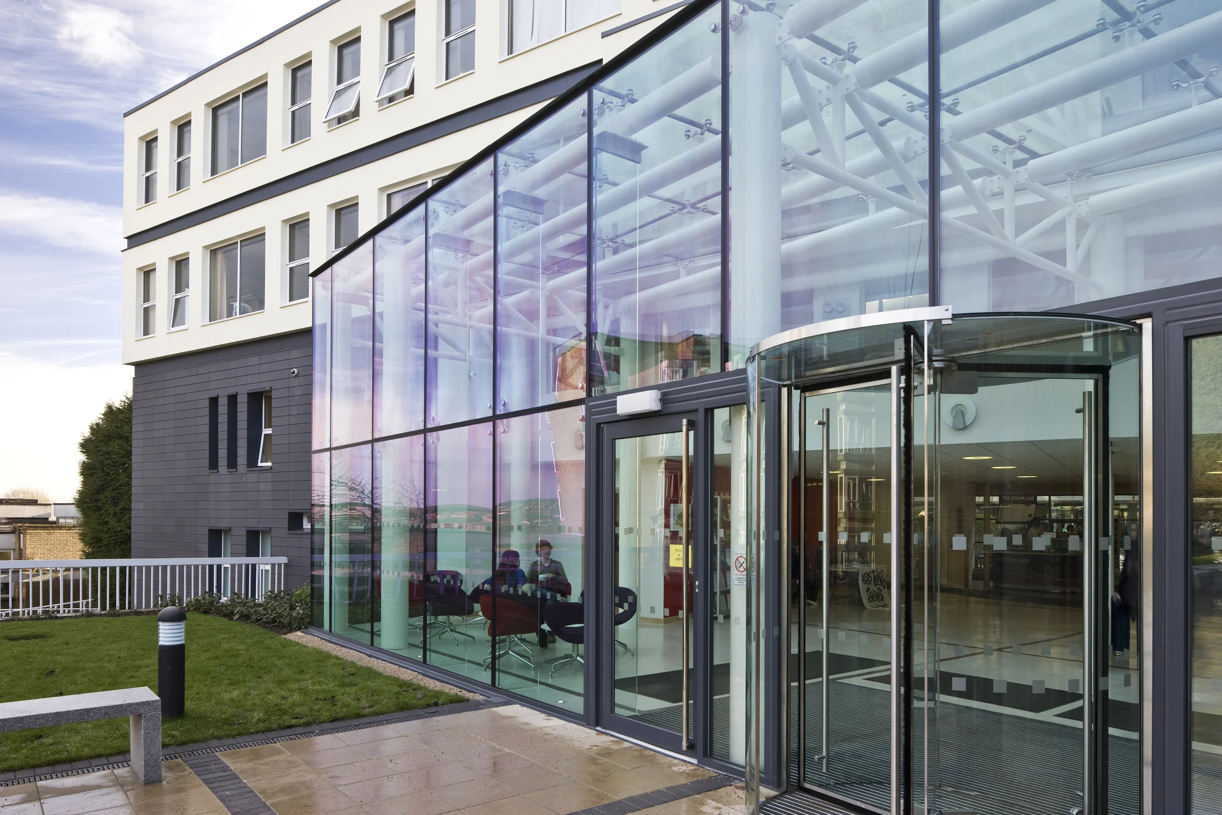 The addition of the glazed ‘atrium’ to the north elevation improves the reception area and at the same time, provides an identifiable entrance to the University.